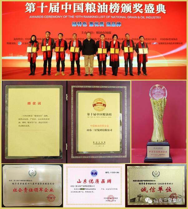 新冠肺炎疫情肆虐、中美貿(mào)易摩擦加劇之下,經(jīng)濟不確定性增加,注定了2020年是不平凡的一年。然而,這一年,山東三星集團逆勢而上,奮力拼搏,特殊年份依然“星光燦爛”,交上了一份令多方滿意的出色答卷,贏得了中國糧油領(lǐng)軍企業(yè)、全國農(nóng)業(yè)產(chǎn)業(yè)化龍頭企業(yè)100強、中國玉米油加工企業(yè)10強等多頂“桂冠”。