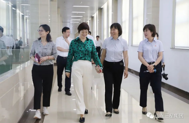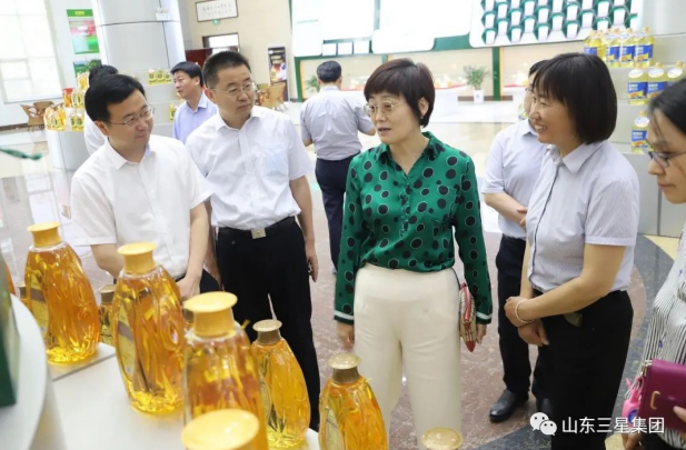 5月25日,中國糧油學(xué)會副秘書長于衍霞一行在濱州市糧食和物資儲備局黨組成員、副局長藺兵川,鄒平市領(lǐng)導(dǎo)孫東平陪同下來山東三星集團(tuán)參觀調(diào)研。山東三星集團(tuán)副總經(jīng)理孫喜、技術(shù)總監(jiān)王月華接待了調(diào)研團(tuán)一行。