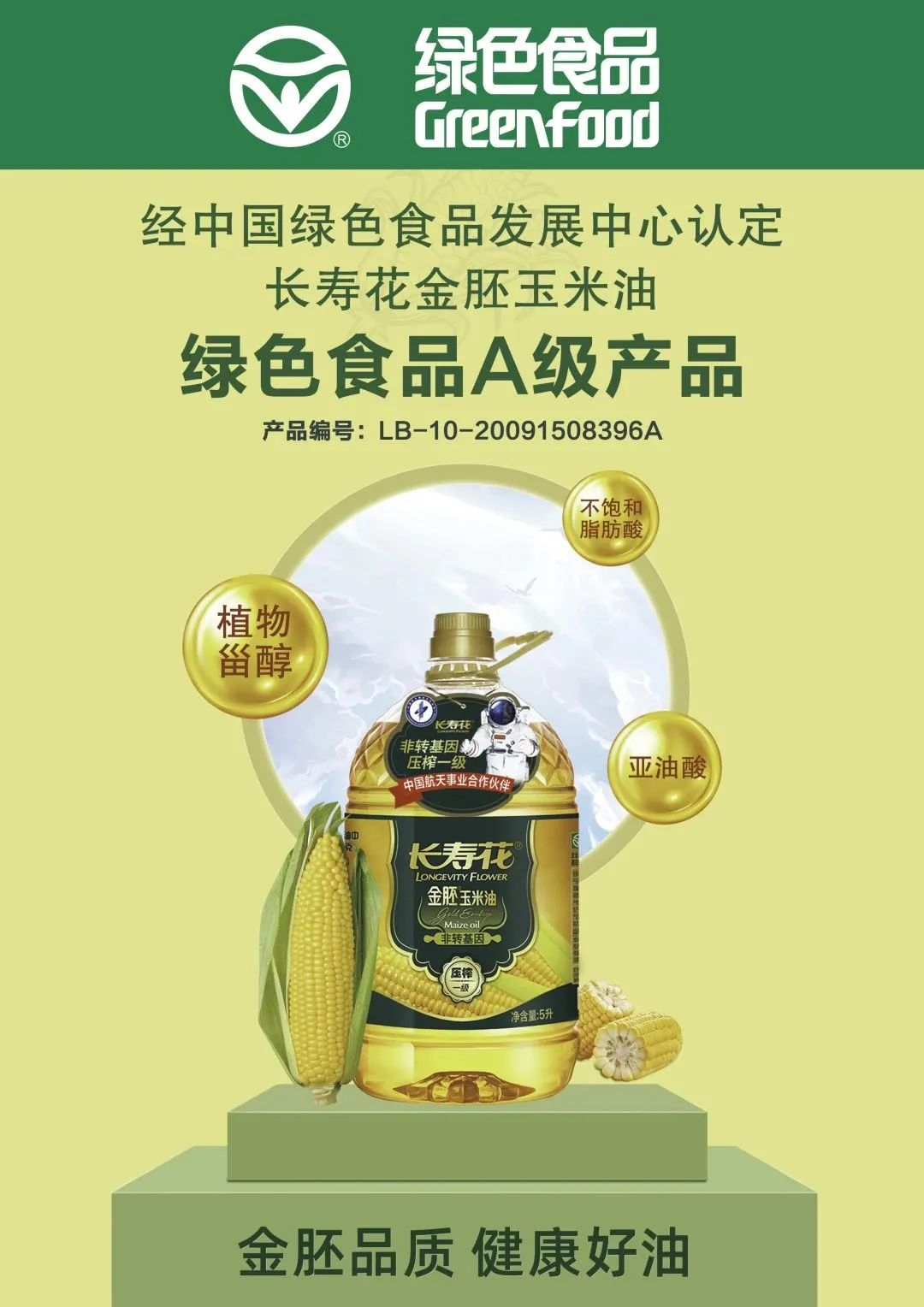 綠色就是品牌競爭力。早在2008年,憑借原料優(yōu)良的生態(tài)種植、綠色高效的生產(chǎn)環(huán)境、科學(xué)嚴(yán)格的品控管理及安全營養(yǎng)的產(chǎn)品特性,經(jīng)中國綠色就是品牌競爭力。早在2008年,憑借原料優(yōu)良的生態(tài)種植、綠色高效的生產(chǎn)環(huán)境、科學(xué)嚴(yán)格的品控管理及安全營養(yǎng)的產(chǎn)品特性,經(jīng)中國綠色食品發(fā)展中心嚴(yán)格審查,長壽花金胚玉米油被認(rèn)定為綠色食品A級產(chǎn)品,獲頒綠色食品證書。自此,長壽花食品的綠色升級發(fā)展之路越走越寬廣,成為國民度極高的玉米油標(biāo)桿企業(yè)和代表品牌,并深受社會及民眾的認(rèn)可和信賴。