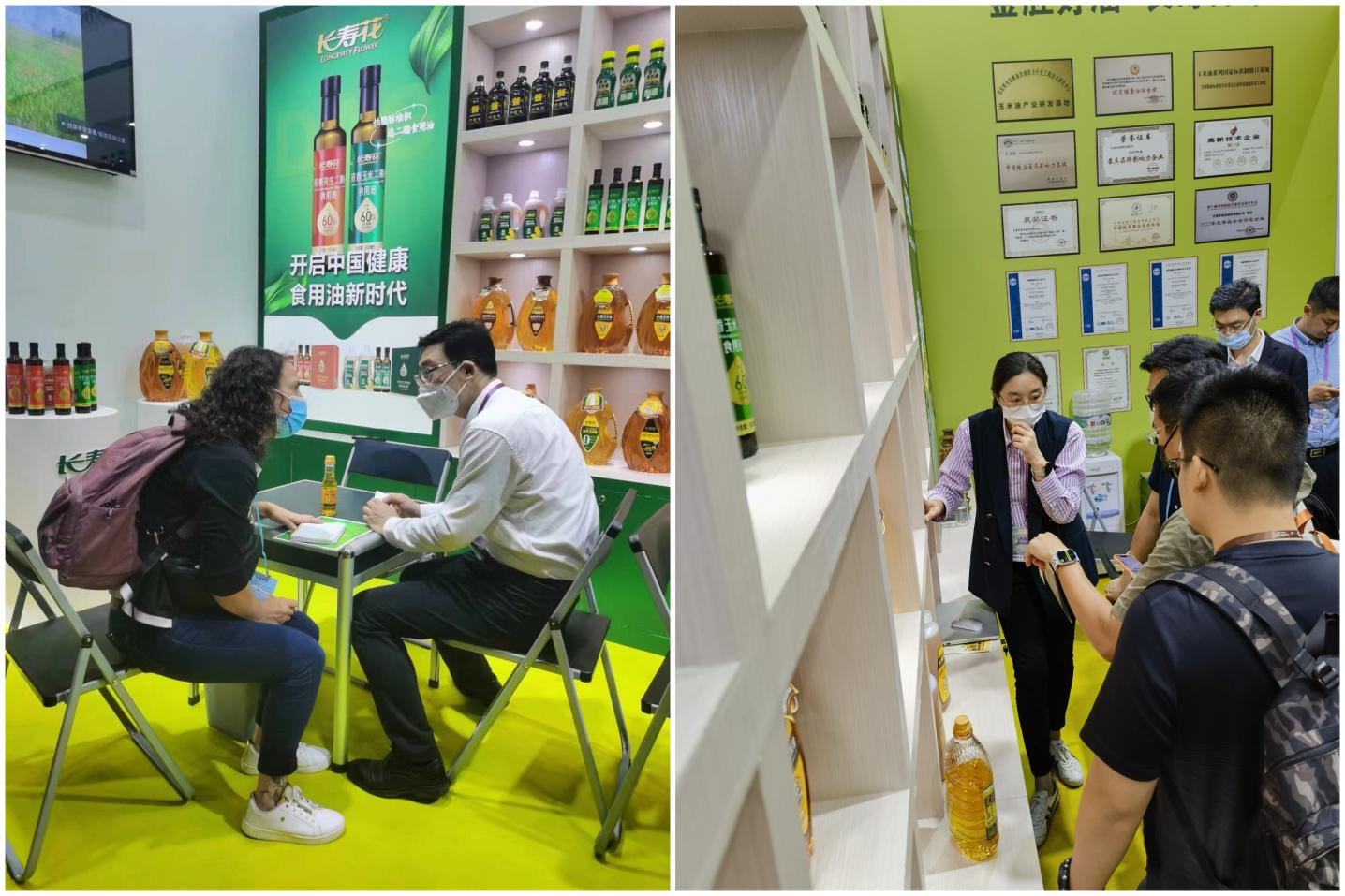展會中,長壽花食品旗下二酯食用油、金胚玉米油、零反式脂肪高養(yǎng)玉米油、濃香玉米油等食用油系列產(chǎn)品,長壽花箸下本釀造系列調(diào)味品等,以新品為主組合式亮相廣交會。特別值得關(guān)注的是,長壽花此次參展的多款戰(zhàn)略新品與廣交會第三期主題理念高度契合,在充分展示品牌創(chuàng)新力和健康產(chǎn)品理念的同時,收獲了許多關(guān)注目光,吸引了眾多國內(nèi)外客商前來咨詢洽談。其中,二酯食用油系列產(chǎn)品最是引人矚目,獨特的產(chǎn)品理念、健康屬性,以及助力國民膳食健康、品質(zhì)生活提升的創(chuàng)新舉措受到廣泛認(rèn)可和肯定。