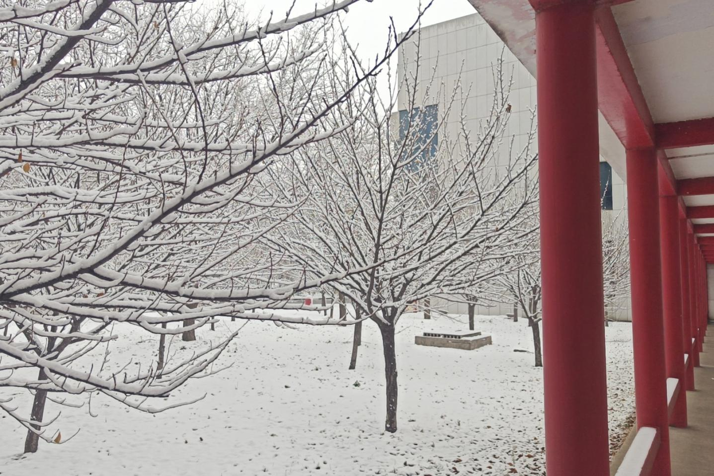 通往裕航科研中心的紅色長(zhǎng)廊抑或飛雪中的明航發(fā)車(chē)