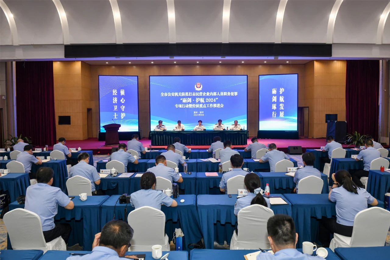 6月11日,全市公安機(jī)關(guān)防范打擊民營企業(yè)內(nèi)部人員職務(wù)犯罪“礪劍·護(hù)航2024”專項行動暨經(jīng)偵重點工作推進(jìn)會在鄒平市召開。會議旨在深入學(xué)習(xí)貫徹習(xí)近平總書記視察山東、主持召開企業(yè)和專家座談會時的重要講話重要指示精神以及全國公安工作會議、全省公安機(jī)關(guān)視頻會議精神,落實中央和省、市促進(jìn)民營經(jīng)濟(jì)發(fā)展系列工作要求,進(jìn)一步扎實推進(jìn)“礪劍·護(hù)航2024”專項行動及經(jīng)偵重點工作。