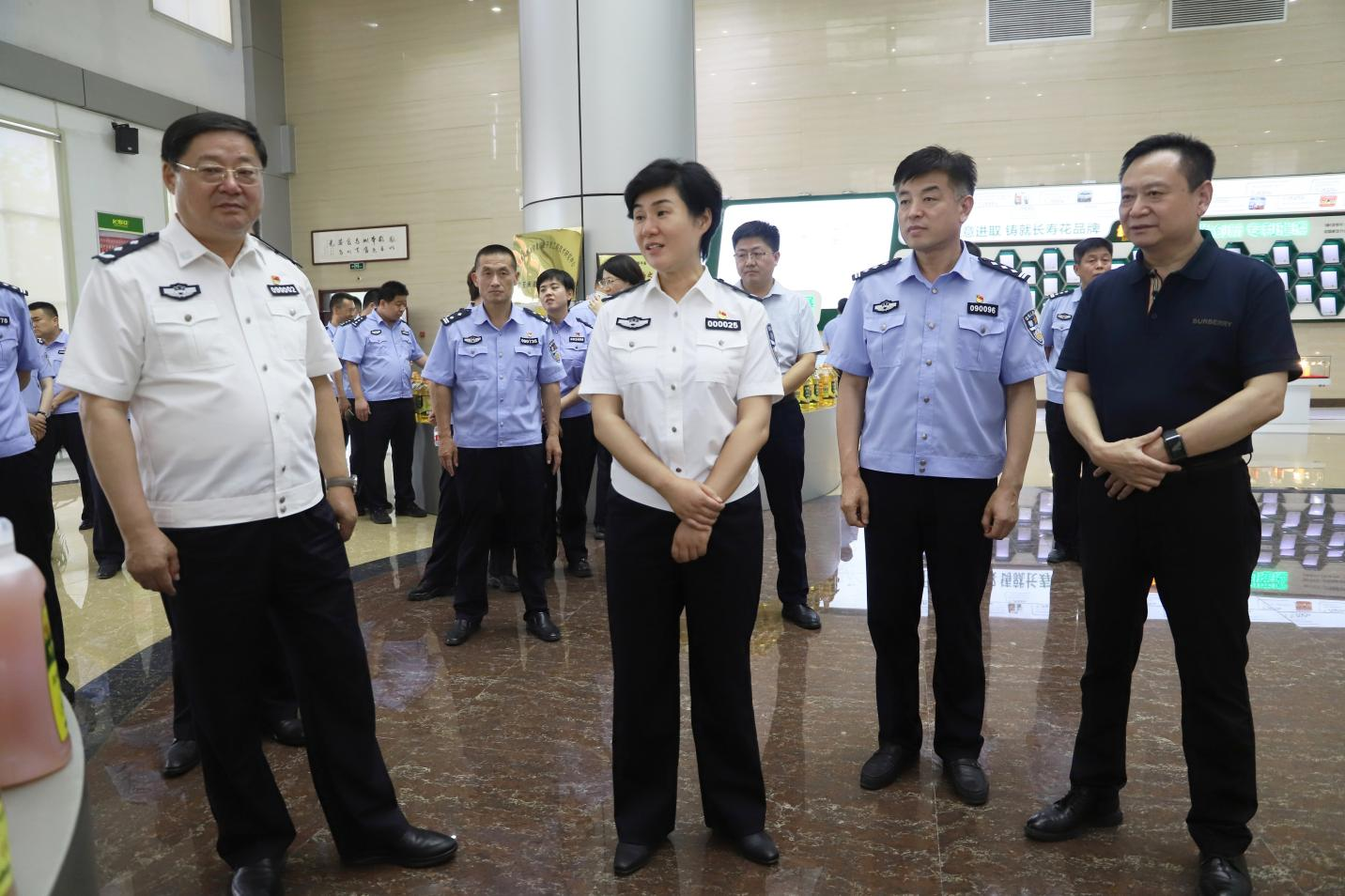 與會領(lǐng)導(dǎo)先后到山東三星集團(tuán)長壽花產(chǎn)品展廳及生產(chǎn)基地參觀,實地觀摩了鄒平市公安局駐山東三星集團(tuán)警務(wù)全科服務(wù)站,詳細(xì)聽取了駐企警長工作匯報,查閱了駐企工作檔案臺賬,與企業(yè)負(fù)責(zé)人進(jìn)行深入交流。山東三星集團(tuán)相關(guān)負(fù)責(zé)人表示,警務(wù)全科服務(wù)站自設(shè)立以來,駐企警長先后結(jié)合山東省公安廳經(jīng)偵總隊“魯劍2023”1號—侵企經(jīng)濟(jì)犯罪專項工作方案、濱州市公安局“礪劍·護(hù)航2024”專項行動,警企聯(lián)動開展了適用于企業(yè)發(fā)展的“雷霆正風(fēng)”侵企行為專項行動、“廉潔從業(yè)、全面防范、護(hù)航高質(zhì)量發(fā)展”為主題的“金盾護(hù)企2024”專項行動,并積極聯(lián)合各部門打通影響企業(yè)發(fā)展的堵點、難點和痛點,提振企業(yè)全員反詐意識和安全防范能力,業(yè)務(wù)對接有力度、偵辦案件有速度、護(hù)航發(fā)展有溫度,真正做到了無事不擾企、有事幫到底,為企業(yè)發(fā)展轉(zhuǎn)型提質(zhì)增添了新的聚合力和躍動力。