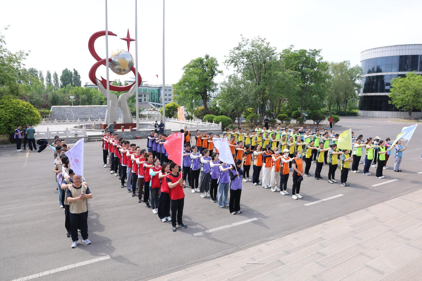 活動伊始,在專業(yè)教練的帶領(lǐng)下,全體拓展員工通過"破冰行動"迅速打破彼此間的陌生感。各支隊伍依次展示了精心設(shè)計的隊名、隊號和隊型,嘹亮的口號響徹廣場,展現(xiàn)出三星人昂揚向上的精神風(fēng)貌。